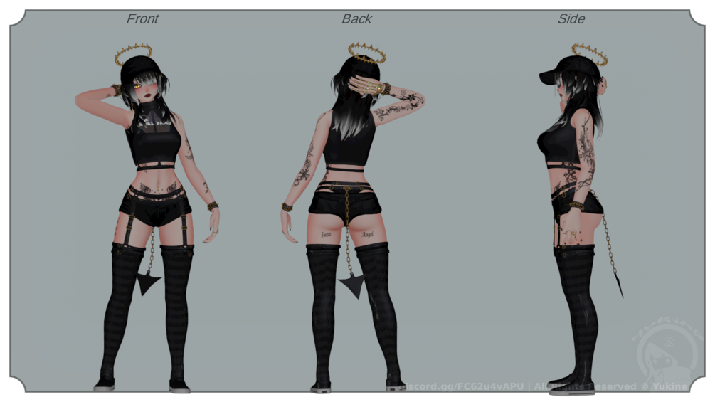 Upon buying this avatar - you are not allowed to take assets, textures, or even icons from the model itself. If you wish to use any of the following used on the model, please refer to the credits above and buy the original product. This also follows that you are not allowed to use my edit of said product, even if you have bought it yourself.